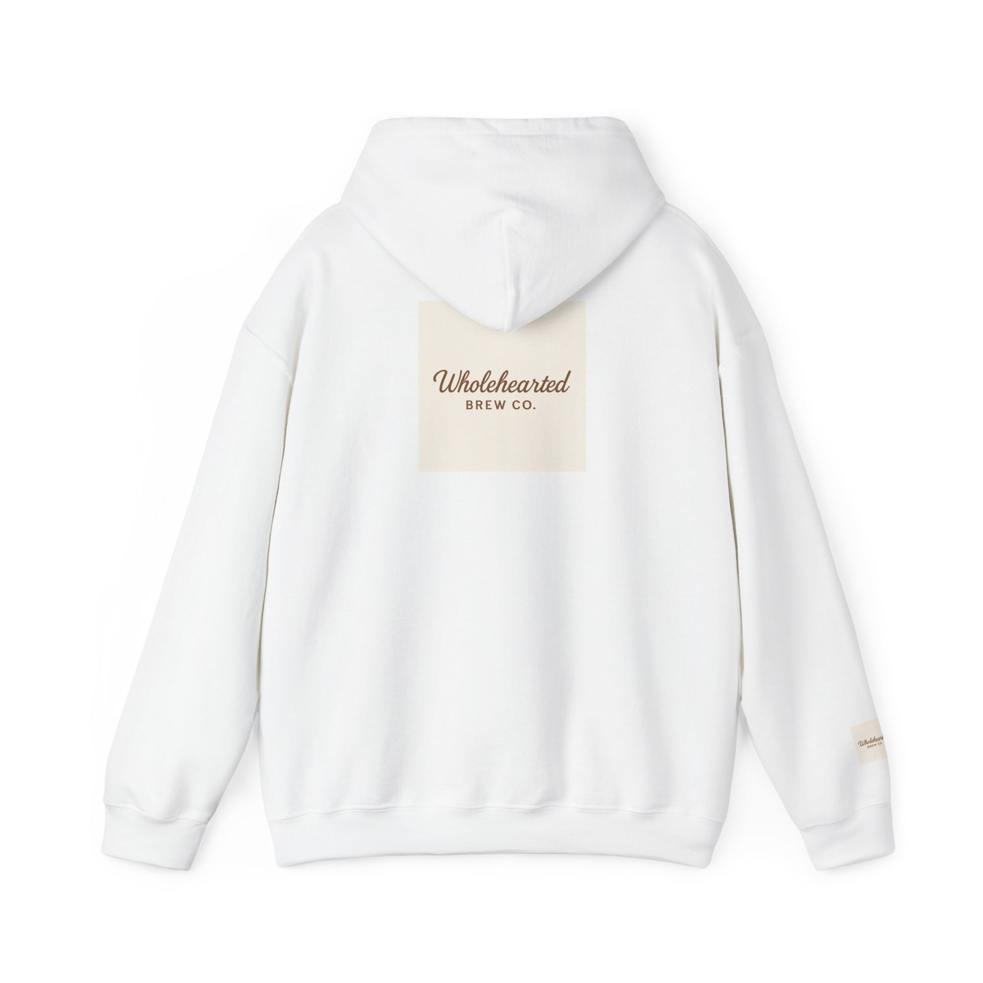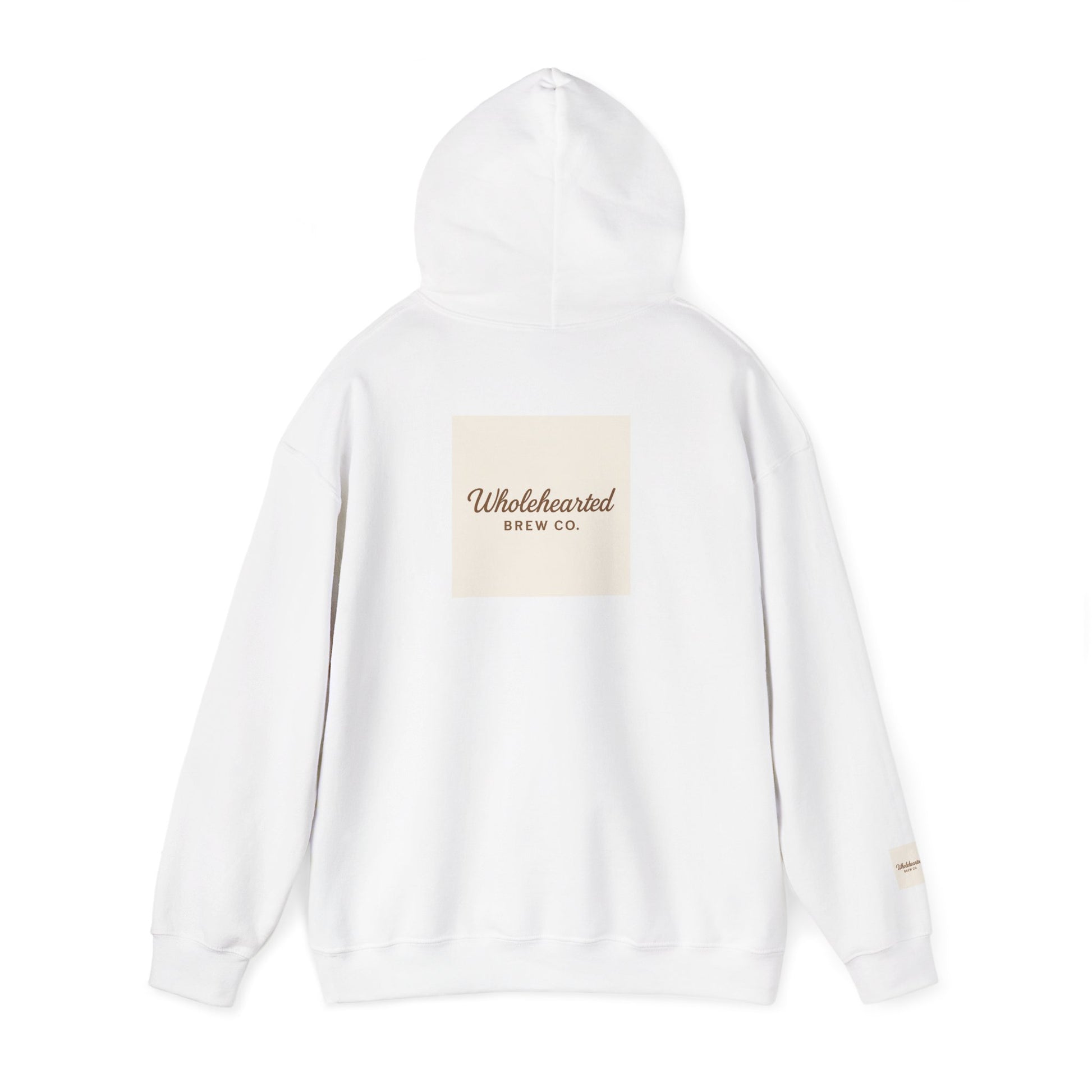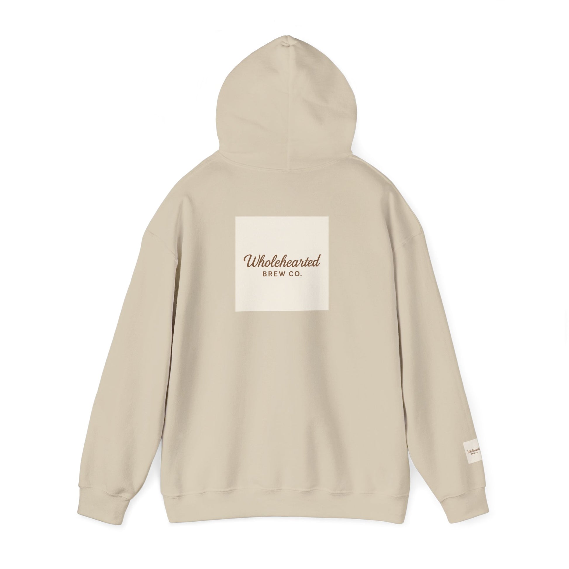 Love Anyway Hoodie - Minimalist Cream Pullover with "Wholehearted Brew Co." Back & Sleeve Print