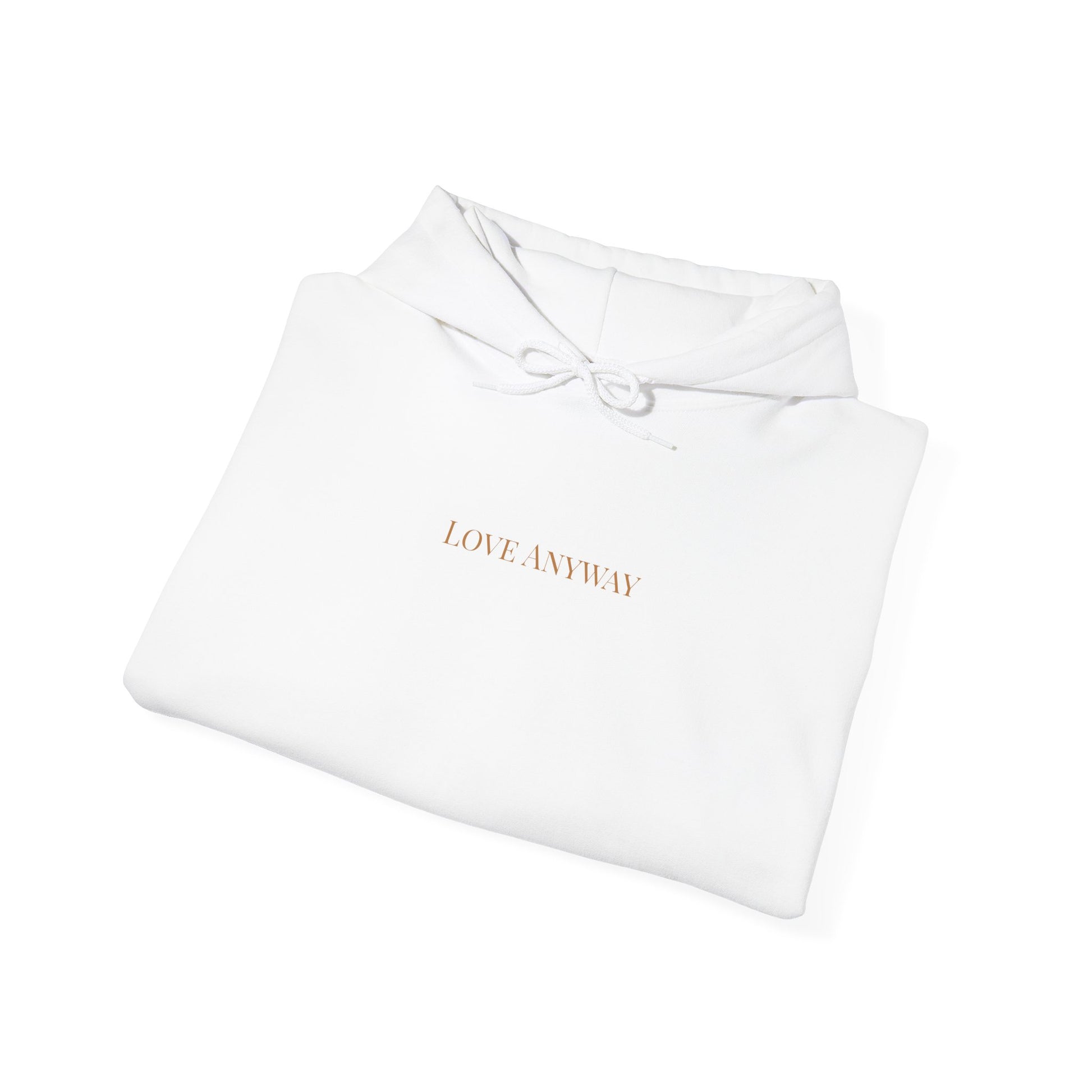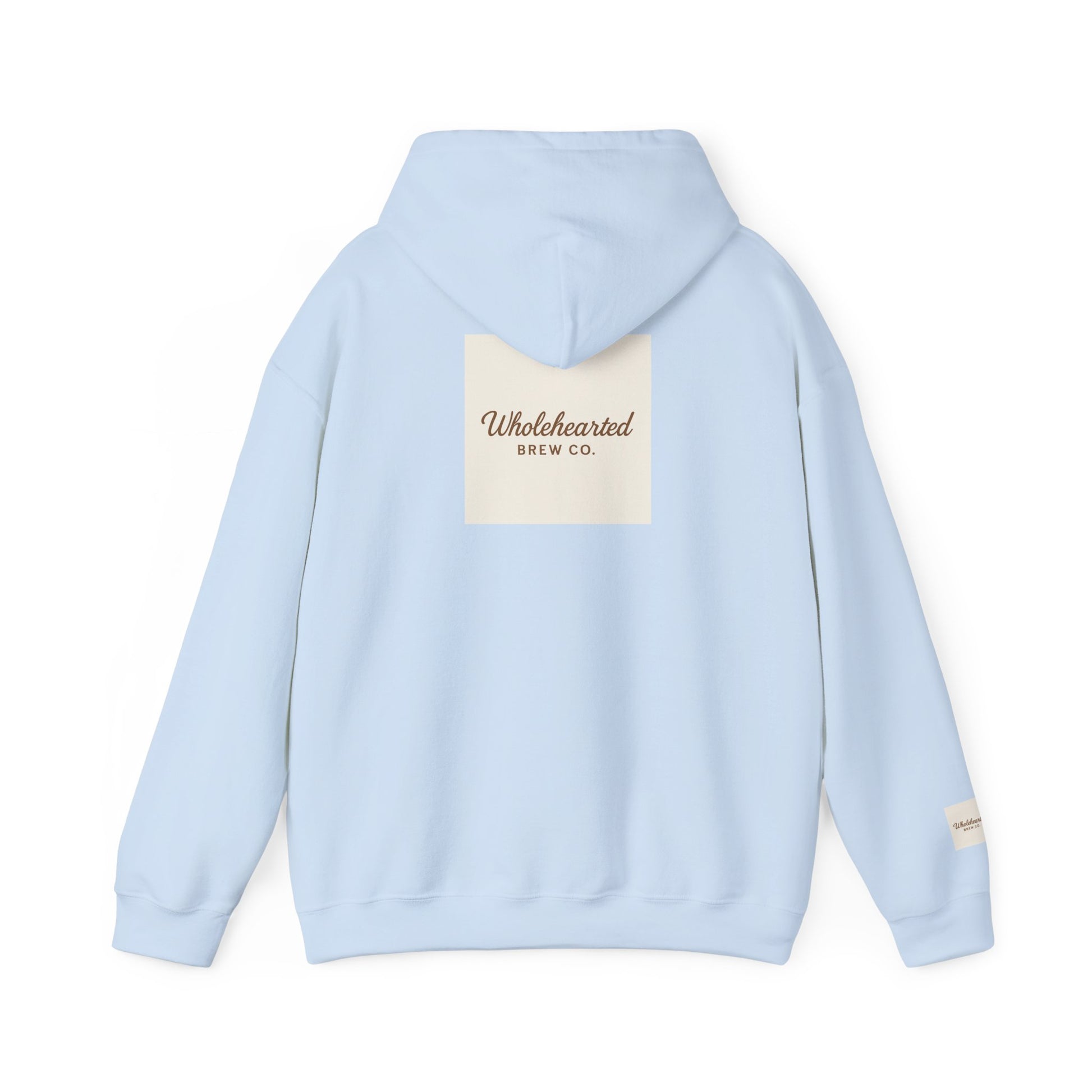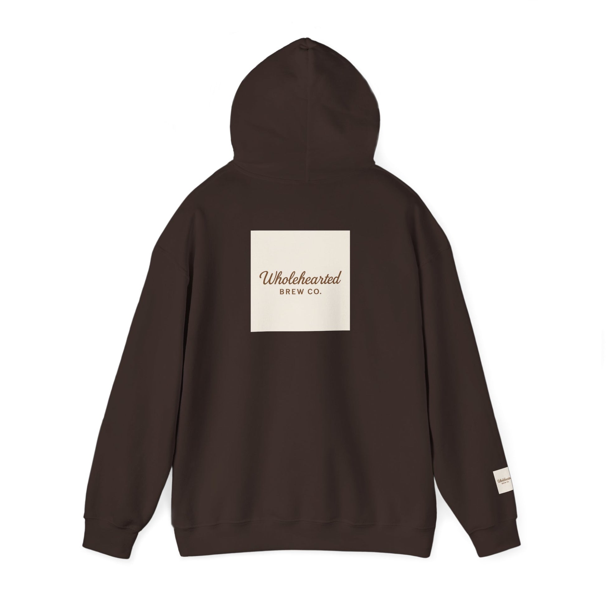 Love Anyway Hoodie - Minimalist Cream Pullover with "Wholehearted Brew Co." Back & Sleeve Print